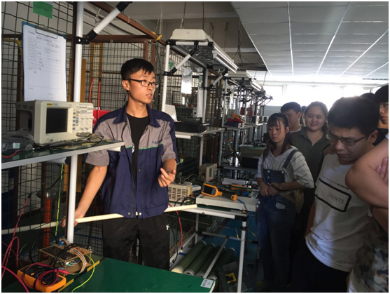 最后,刘工带领同学们参观综合车间,PCB焊接区,高压实验室,组装测试车间等地,使同学们更详细的了解了高压电源的各个生产和品控环节。